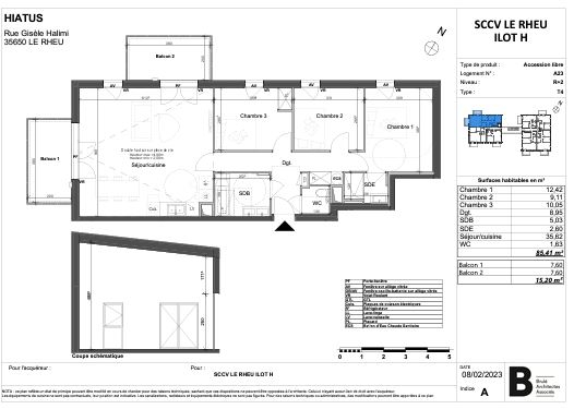 LE RHEU – T3 de 63.31m² avec balcon avec 2 parkings