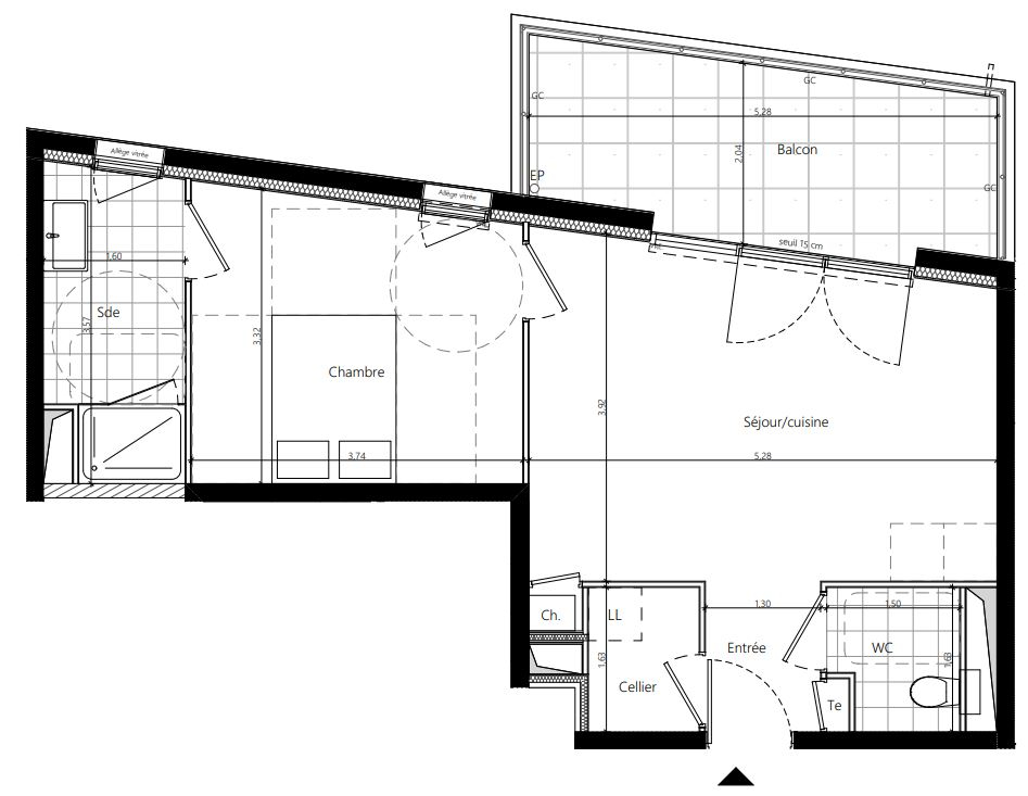 Vous y trouverez cet appartement T2 de 43 m² au 2eme étage comprenant : une entrée avec un cellier, un séjour/cuisine de 19 m² donnant sur un balcon d’environ 10 m2, des WC séparés et une suite parentale de 11 m2 accompagnée de sa salle d’eau.